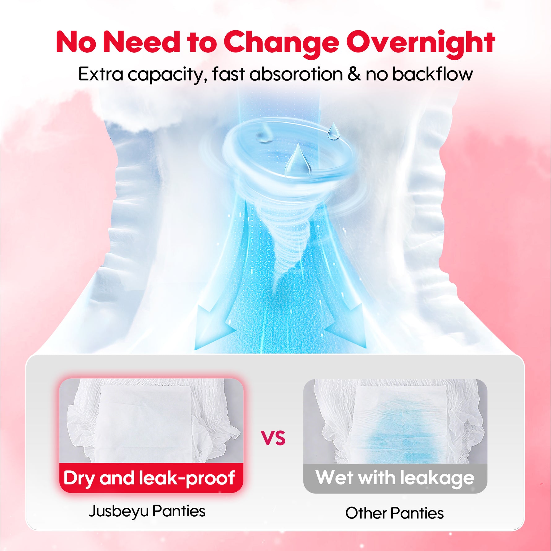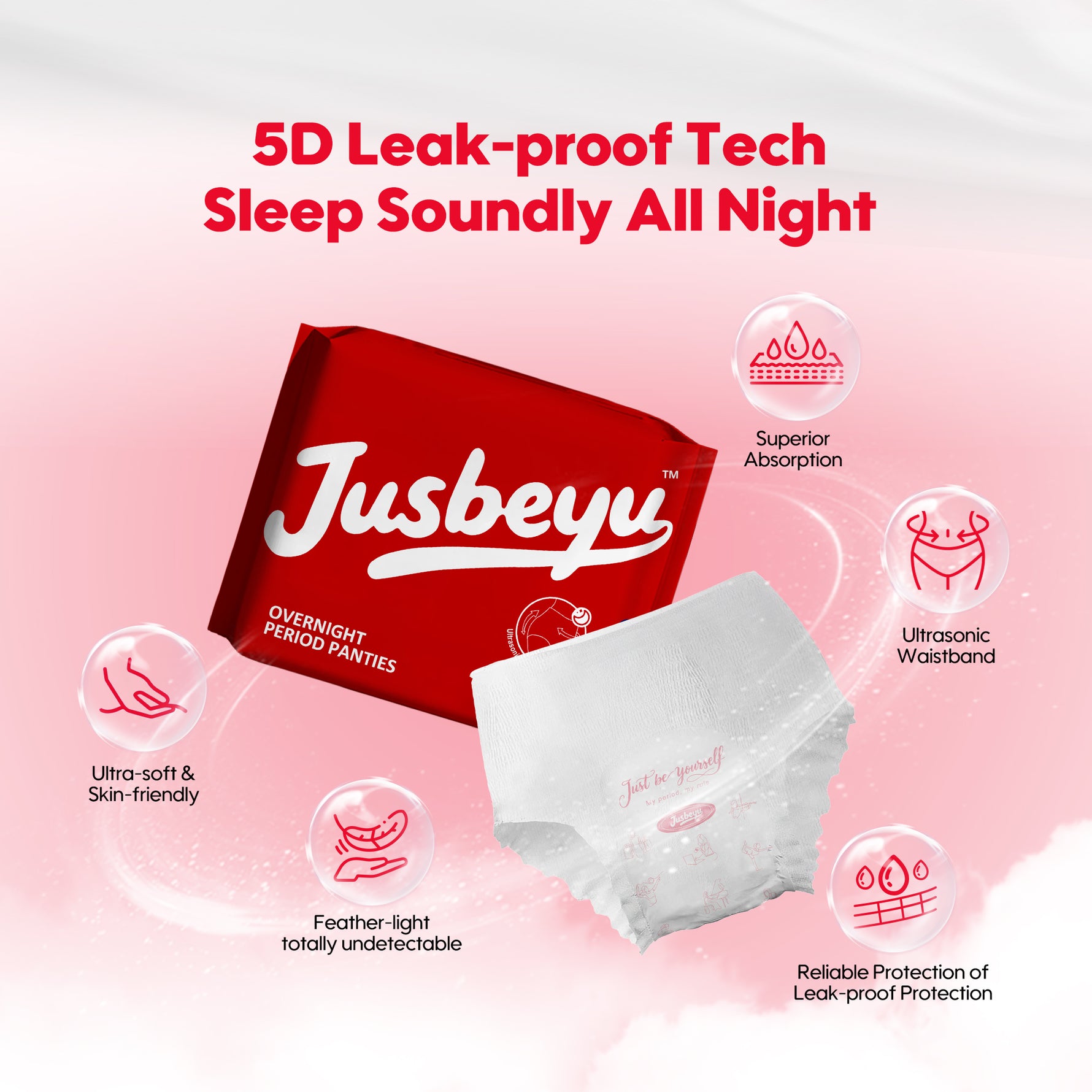 The period panties feature a double-layered 3D core that locks in fluid, with an absorbency up to 3 times that of a regular overnight pad. They effectively prevent side and back leaks, making them suitable for heavy-flow nights.