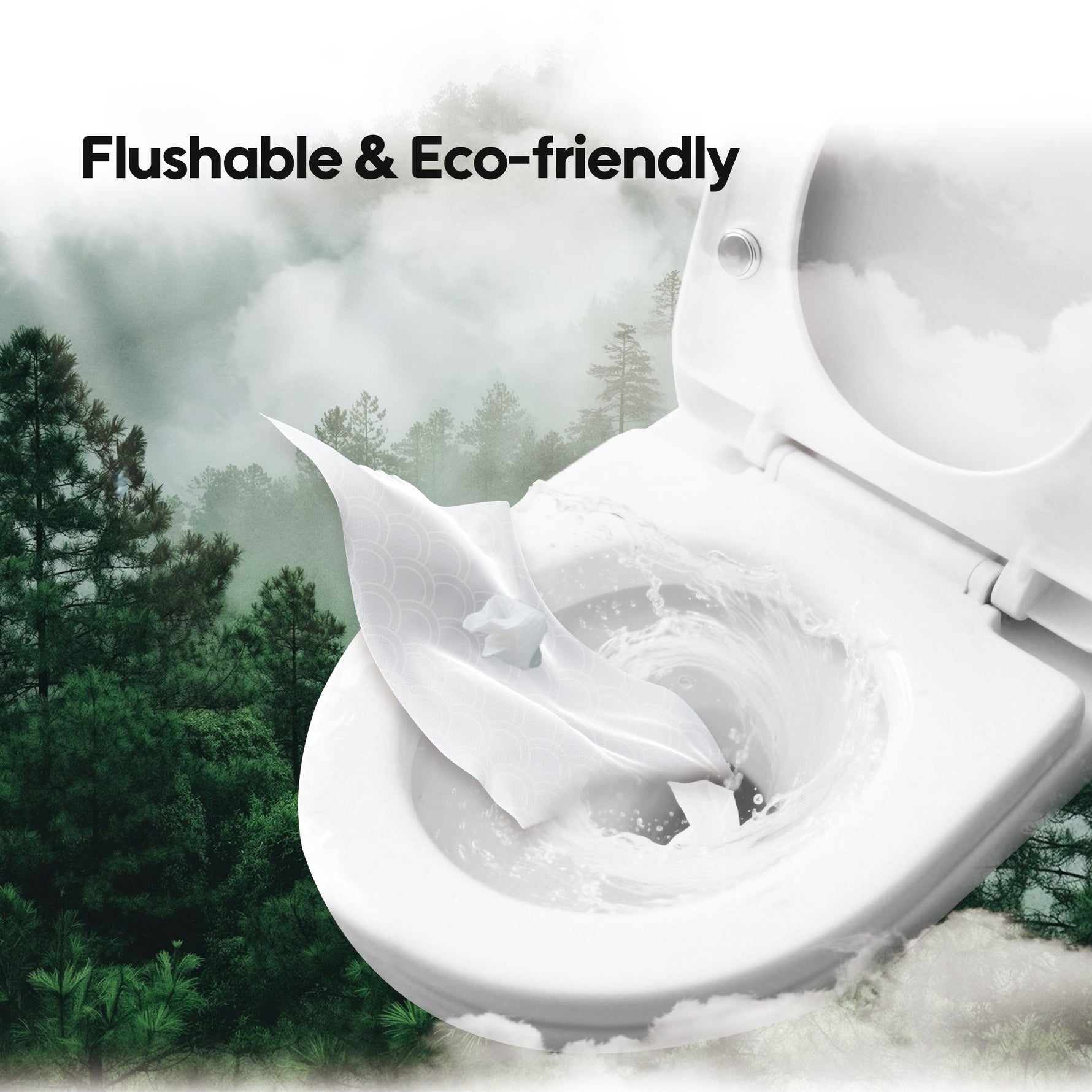 The wipes feature a flushable design, allowing them to be disposed of directly in the toilet after use. This eco-friendly design avoids extra waste, making it both convenient and environmentally conscious.